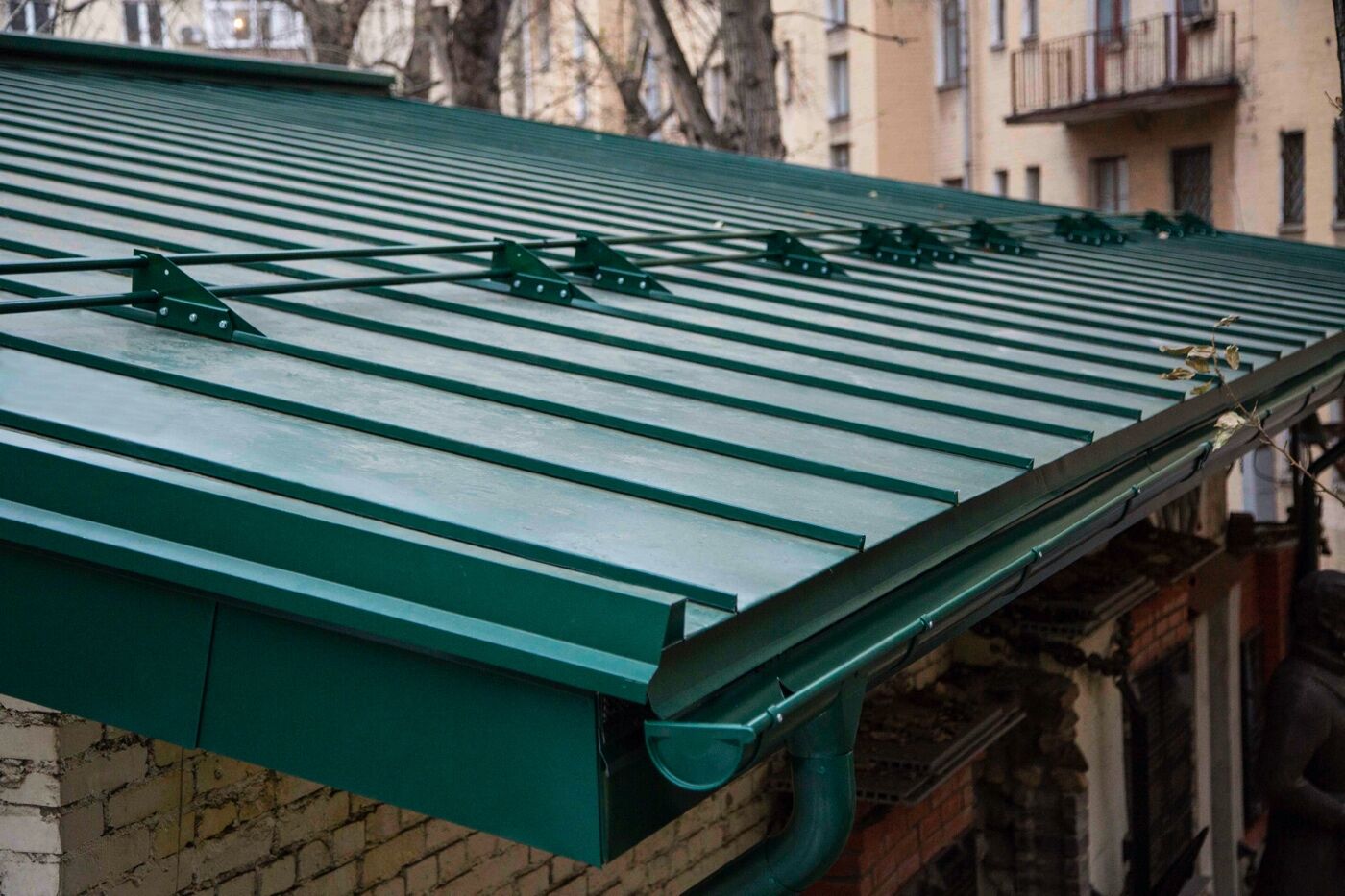Но металлическая кровля в обязательном порядке требует наличия громоотвода, потому что она способна накапливать электрический потенциал. Также фальцевая кровля «без боя» пропускает внутрь все звуки, в связи с чем, требует хорошей шумоизоляции.