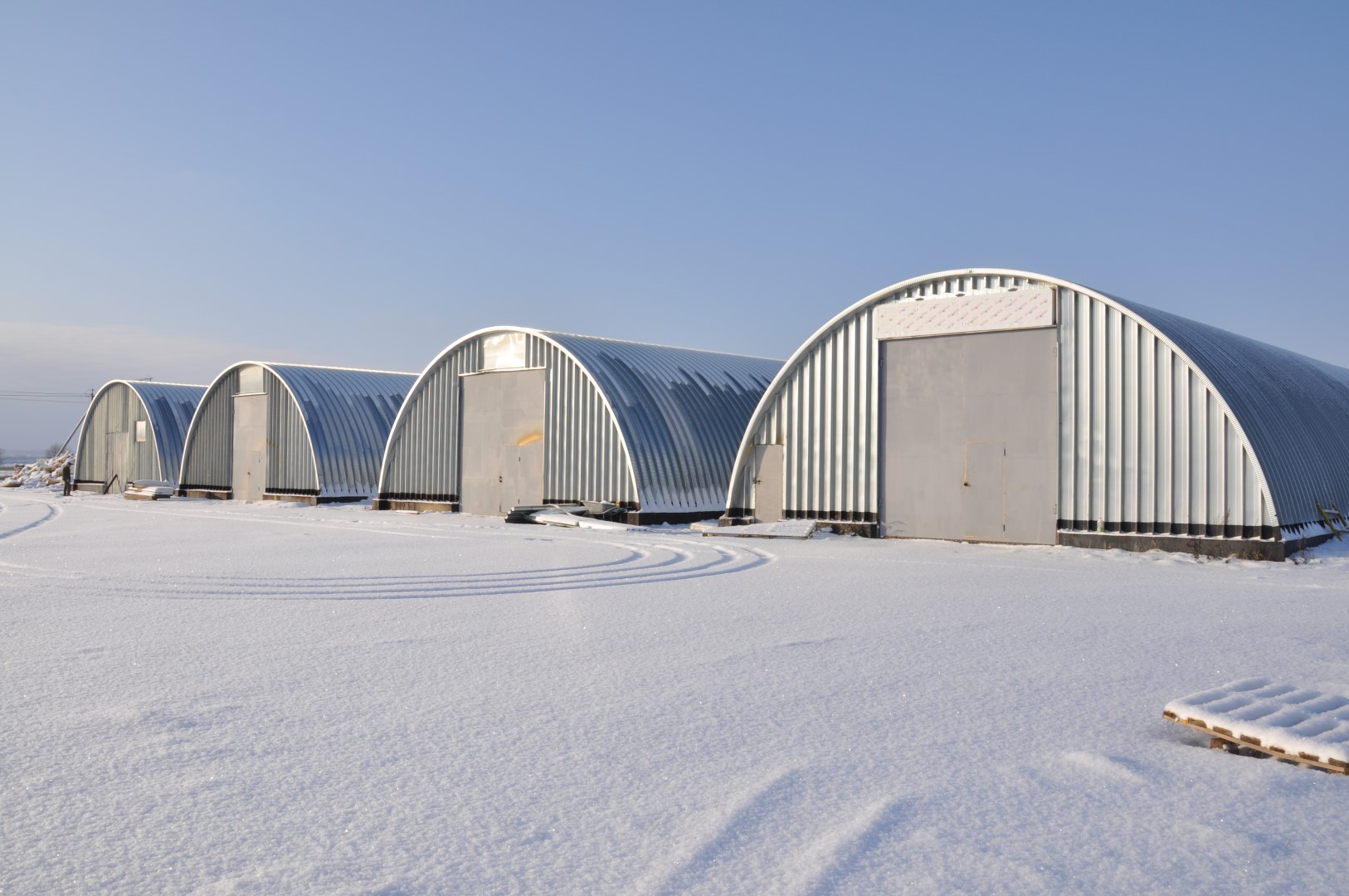 Бескаркасный ангар из арочного профнастила Н114ПГ– сооружение, в котором отсутствуют дополнительные опорные и соединительные элементы в виде балок и колонн, что увеличивает внутреннее пространство.