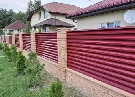 - Конструкция заборов-жалюзи отличается прочностью и отлично выполняет функцию защиты территорий. Снаружи видимость участка ограничена, в то время как изнутри обзор возможен.