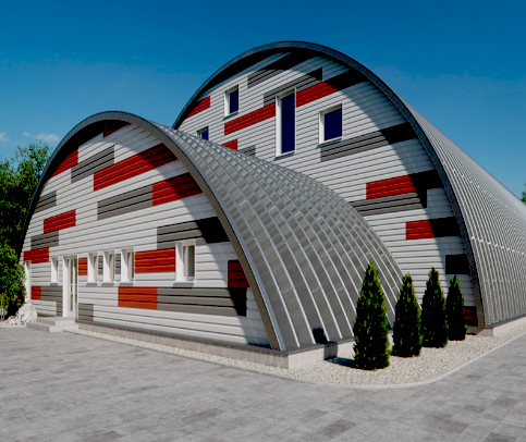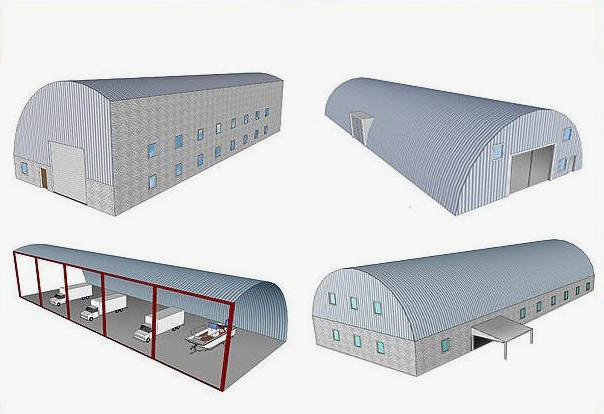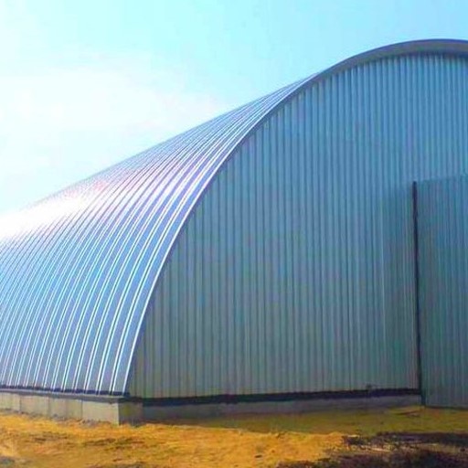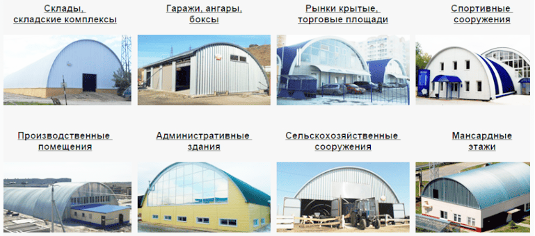 Бескаркасные арочные ангары из профнастила самонесущего Н112ПГ– вид быстровозводимых зданий, которые представляют собой единую самонесущую конструкцию арочной формы из рулонной оцинкованной или окрашенной стали толщиной 0,8-1,5 мм.