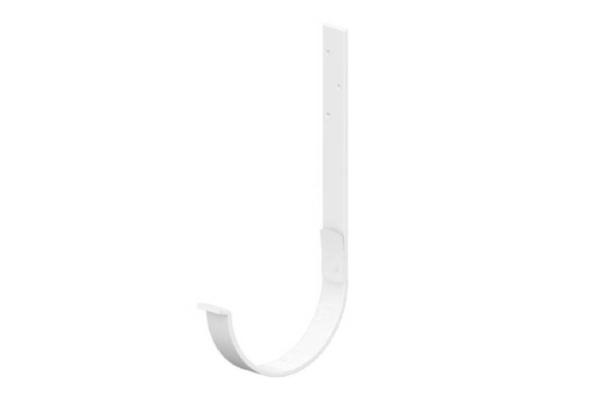 Металлическая водосточная система Держатель желоба D125х320 (ПО-01-9010) изготовлена из оцинкованной стали 4 мм толщиной. В качестве защитного барьера от механических повреждений, осадков, солнечной радиации применено покрытие Пластизол двусторонний. Такая система подходит как для частного дома, так и для промышленных объектов. Она долговечна, экономична и эффективно отводит воду с кровли.