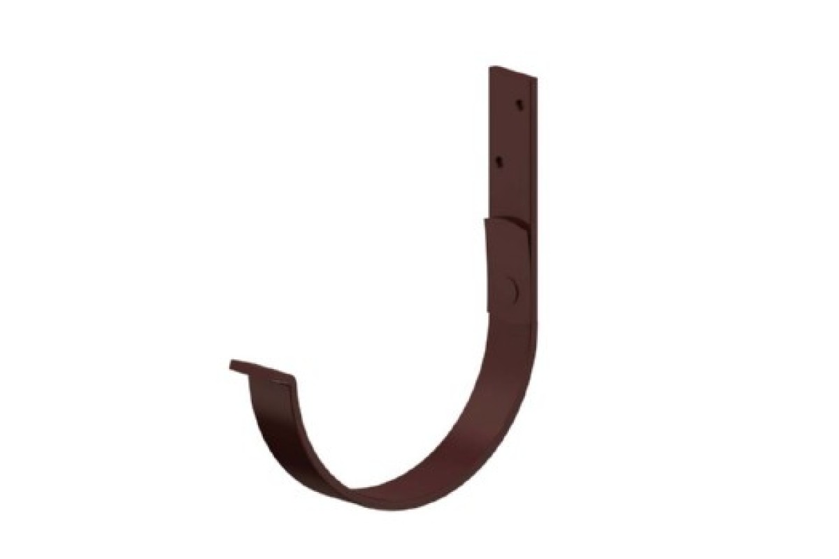 Металлическая система водоотвода Держатель желоба карнизный профилированный D125х145 GS (ВПЭ-02-8017-1) сделана из стали промышленной оцинковки 1 мм толщиной. В качестве защитного барьера от ультрафиолета, осадков, механических воздействий использовано покрытие Высокопрочный полиэстер двусторонний. Такая система подходит как для частного дома, так и для промышленных объектов. Она долговечна, экономична и эффективно отводит воду с кровли.