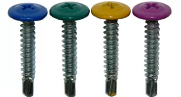 При подборе метизов учитывается длина стержня, геометрия и расцветка шляпки, а также размерность резьбы. Головки окрашиваются согласно палитре RAL. Продукция обладает высокой механической прочностью. Она устойчива к изгибающим нагрузкам, вибрациям и ударам.