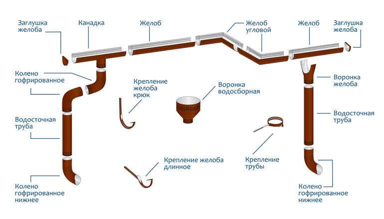 Основные элементы водосточной системы