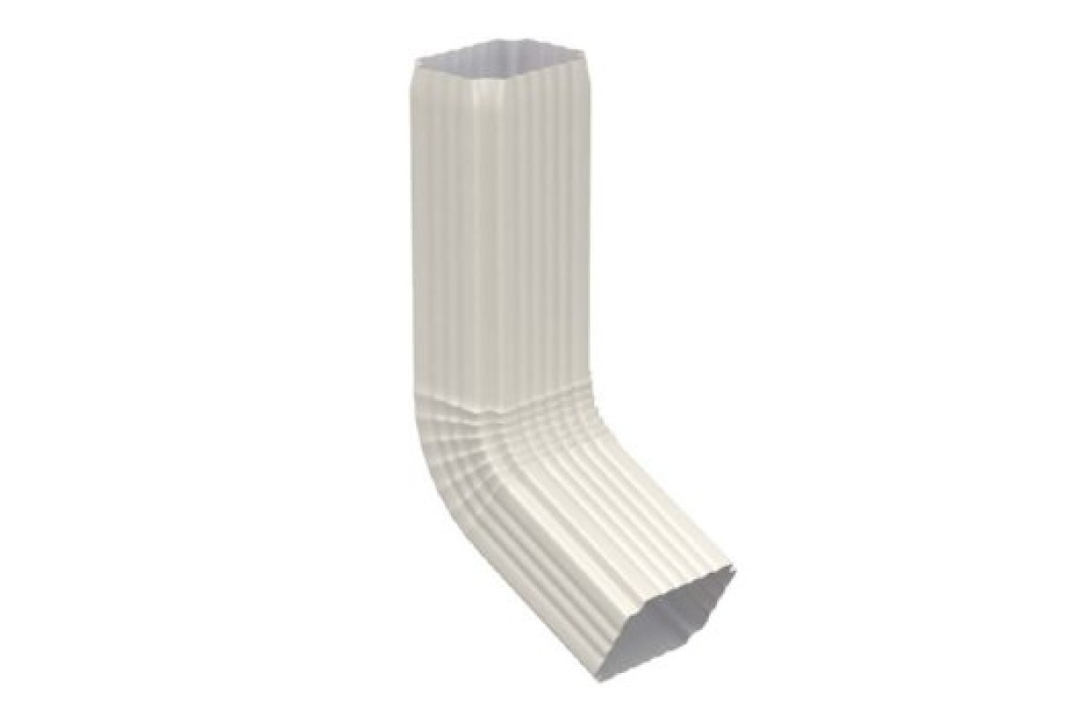 Металлическая система водоотвода Колено трубы 76х102 (ПЛ-02-9010-0.5) выполнена из стали машинной оцинковки толщиной 0.5 мм. В качестве защитного барьера от солнечной радиации, влаги, механических воздействий применено покрытие Пластизол. Такая система подходит как для частного домостроения, так и для индустриальных объектов. Она долговечна, экономична и эффективно отводит воду с кровли.