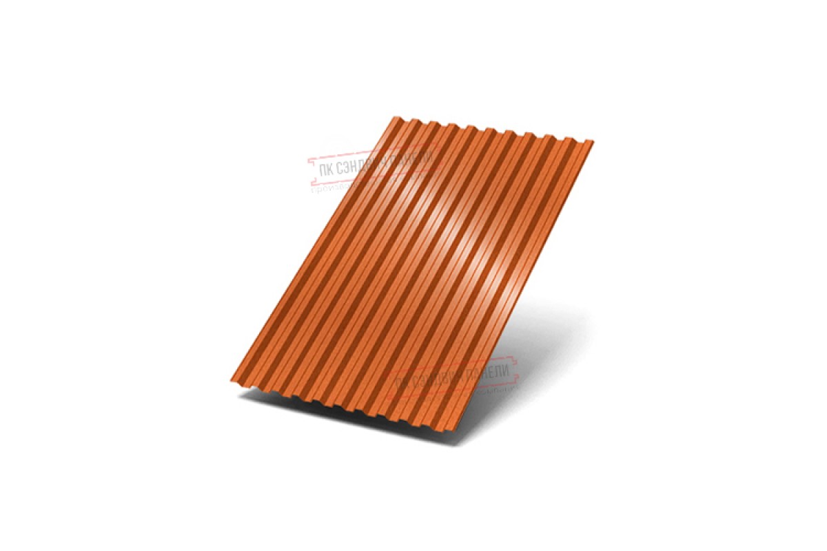 Профилированный лист C21х1000 AGNETA-CopperCopper-0.5 — популярный материал в Кронштадте для оформления фасада. Представляет собой стальной оцинкованный лист толщиной 0.5 мм с покрытием. После проката на специальном оборудовании сталь приобретает рисунок из повторяющихся волн. Такая конфигурация придает профилю несущую способность.