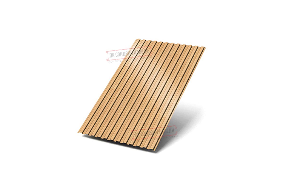 Профилированный лист МП10х1100 ECOSTEEL-Клен-0.5 — популярный материал в Кронштадте для обустройства фасада. Представляет собой лист оцинкованной стали толщиной 0.5 мм с покрытием. Проходя процедуру холодного проката, сталь приобретает рисунок из ритмичных волн. Жёсткость такого листа гораздо выше плоского.