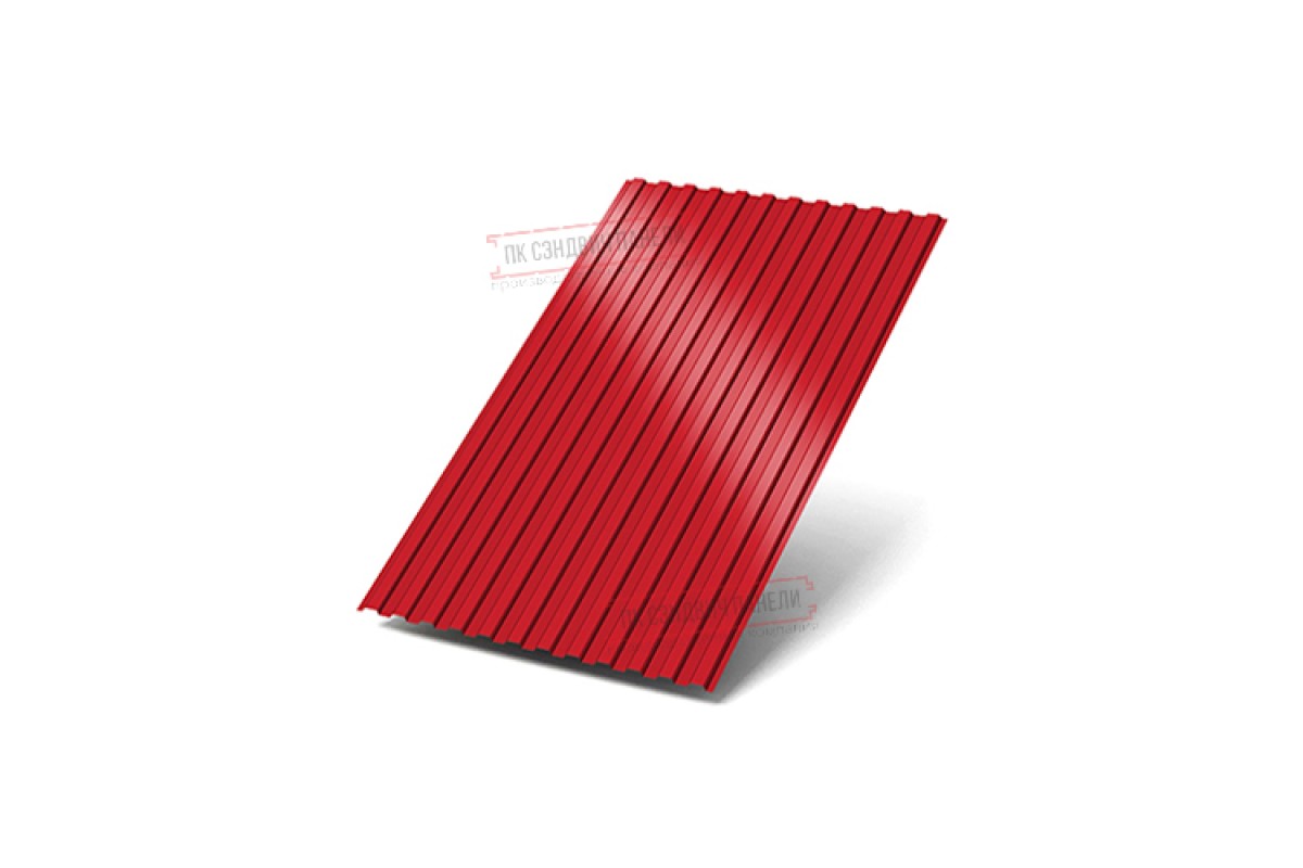 Профилированный лист МП10х1100 Norman RAL-3020-0.5 — популярный материал в Кронштадте для оформления фасада. Представляет собой лист оцинкованной стали толщиной 0.5 мм с покрытием. После проката на специальном оборудовании сталь приобретает рисунок из ритмичных волн. Несущая способность профилированного листа на порядок выше плоского.