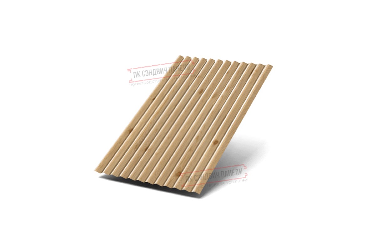 Профилированный лист представляет собой стальные листы холодного проката толщиной 0.5 мм, обработанные декоративно-защитным покрытием Экостил матовый. Для монтажа фасада в стиле хай-тек Профилированный лист МП18х1100 ECOSTEEL_MA-Сосна-0.5 — оптимальный вариант. Профилированный лист МП18х1100 ECOSTEEL_MA-Сосна-0.5 пользуется спросом в Кронштадте по причине своей экономичности и неприхотливости. При покупке профилированного листа помните: чем рельефнее материал, тем выше его прочностные характеристики.
