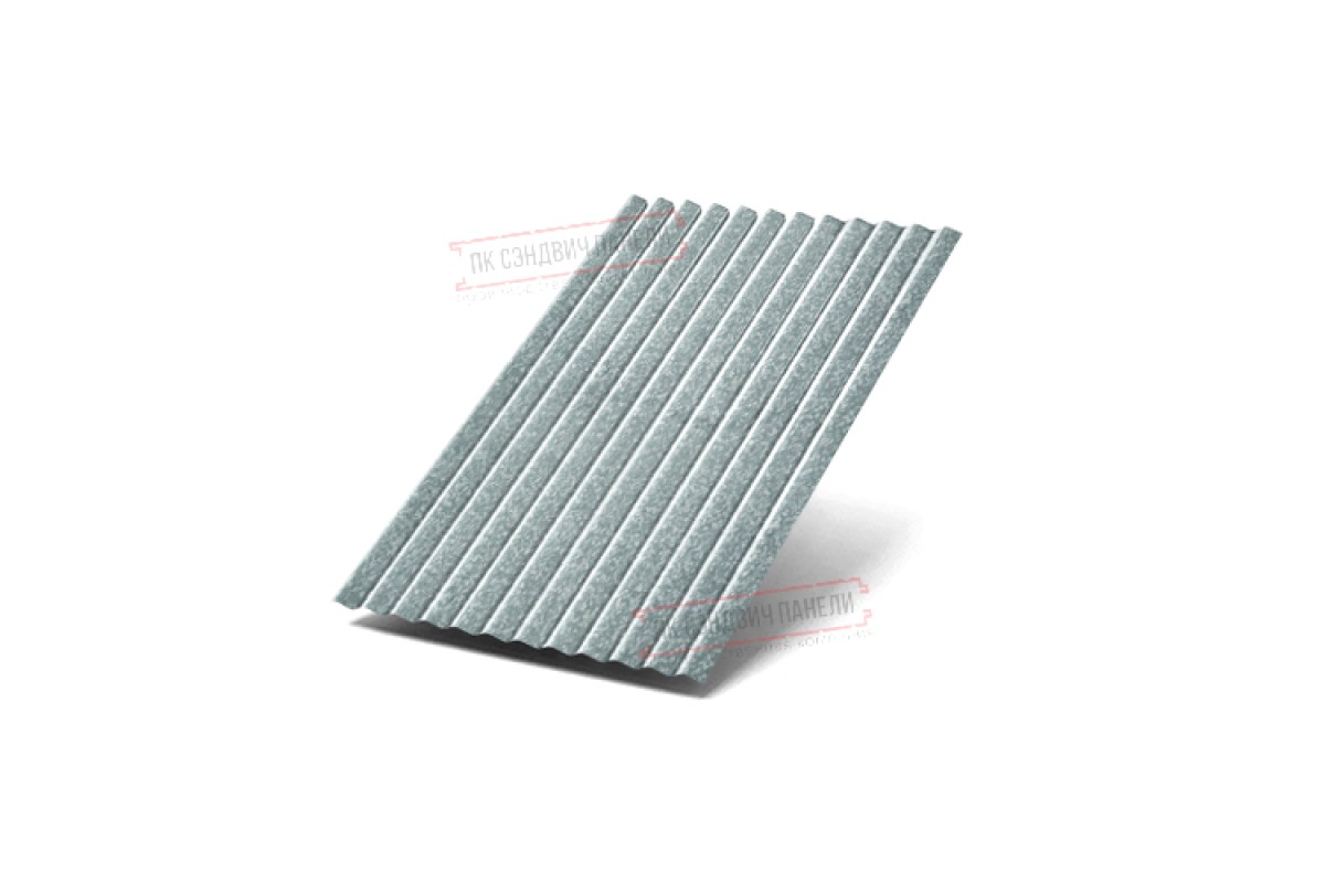 Оригинальный волнообразный профиль – в отличие от остальных марок профнастила, он не имеет прямых углов. Такая конфигурация и толщина металла от 0,45 до 0,7 мм делают-18 отличным решением для обшивки фасадов нежилых зданий склады, цеха, автосервисы и установки заборов. Профлист «Волна» успешно совмещает в себе прочностные параметры с эстетичным обликом. В роли исходного сырья для выпуска-18 используется тонколистовая сталь промышленной оцинковки. Она отлично выдерживает даже экстремальные атмосферные условия: порывистый ветер, солнечная радиация, снег. А финишное полимерное покрытие действенно предупреждает ржавение и прочие окислительные реакции. При монтировании «Волны» используются специальные отделочные элементы округлой конфигурации, которые дополняют образ всего строения и создают ему необычный вид.Покрытие Цинк: