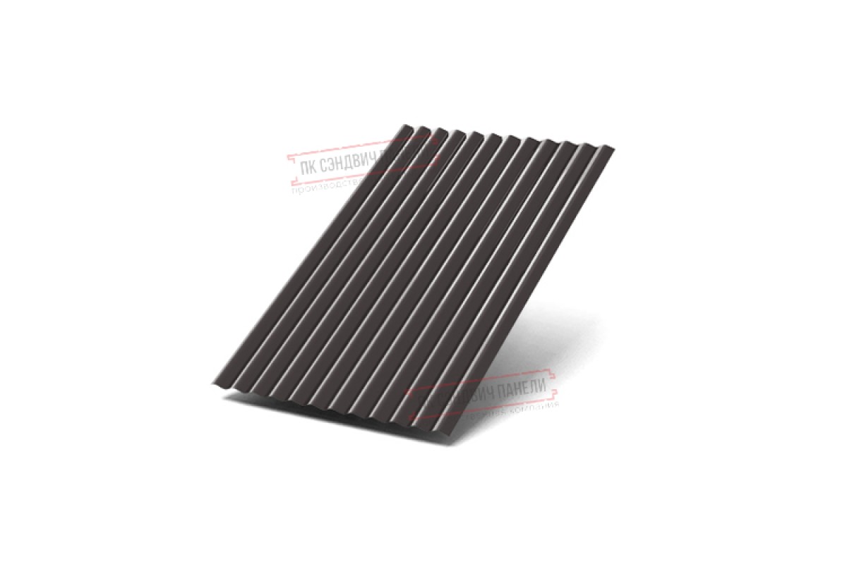 Уникальный волнообразный профиль – в сравнении с другими марками профнастила, он не имеет прямых углов. Подобная конфигурация и толщина металла от 0,45 до 0,7 мм делают-18 подходящим вариантом для возведения ограждений и отделки фасадов нежилых зданий склады, цеха, автосервисы . Профилированный лист «Волна» успешно сочетает в себе отличные технические параметры с эффектным внешним видом. В качестве исходного сырья для выпуска-18 выступает оцинкованная тонколистовая сталь. Она прекрасно переносит даже экстремальные климатические условия: снег, порывистый ветер, агрессивный ультрафиолет. А защитное полимерное покрытие дополнительно предотвращает корродирование и прочие физико-химические процессы. При монтаже-18 используются особые отделочные детали закруглённой формы, которые завершают облик всего строения и придают ему современный вид.Покрытие Полиэстер: