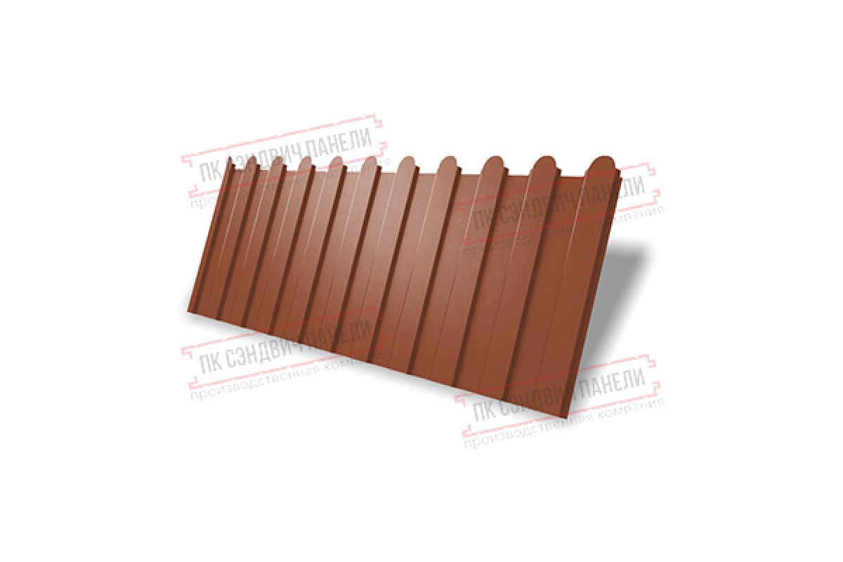 Купить профнастил фигурный C8 - 0,45 ПЭ с пленкой RAL 8004 терракота по выгодным условиям.
