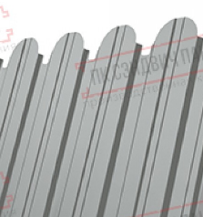 Фигурный профнастил имеет оригинальную волнообразную верхнюю кромку. Ее еще часто называют куполом. По форме он напоминает евроштакетник, только сегменты остаются соединенными вместе.