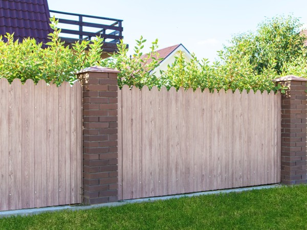Отличным дизайнерским дополнением к такому забору могут стать разнообразные панели, кирпичные, металлические, бетонные или каменные столбы.