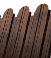 Фигурный профнастил имеет оригинальную волнообразную верхнюю кромку. Ее еще часто называют куполом. По форме он напоминает евроштакетник, только сегменты остаются соединенными вместе.