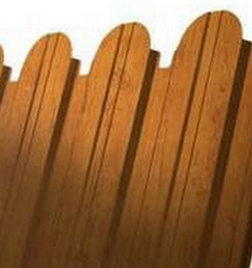 Фигурный профнастил имеет оригинальную волнообразную верхнюю кромку. Ее еще часто называют куполом. По форме он напоминает евроштакетник, только сегменты остаются соединенными вместе.