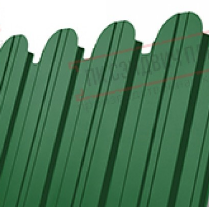 Профнастил C10 с фигурной кромкой имитирует классический русский деревянный забор.Имеет высоту профиля, которая позволяет использовать это профнастил более широко. Он может быть использован для облицовки фасадов, возведения ограждений и в качестве кровельного материала для небольших кровель (крыльцо, беседки и прочее).