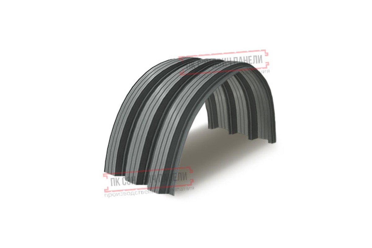 Арочный профнастил самонесущий H112ПГ-0.65, для бескаркасных ангаров, Полиэстер RAL 7005 - это долговечный материал, который устойчив к высоким нагрузкам, Н112ПГ с высотой гофра 112 мм монтируется с шагом в 2-2,5 м для опор. Продукция из оцинкованной стали стоит недорого и представлена с тремя вариантами покрытия: одностороннее, двустороннее и без него. Дополнительное оформление выполняется в виде лакокрасочной декоративной отделки.