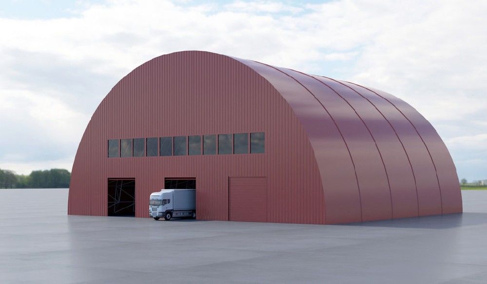 Строительство бескаркасных арочных ангаров позволяет существенно сэкономить финансы на материале, а также уменьшить трудозатраты при их возведении. За счет легкости конструкции и отсутствия несущих металлических элементов на фундамент не приходится большая нагрузка.