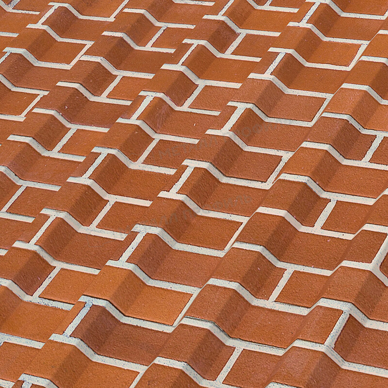 Профлист МП20 представлен в цвете "кирпич". Его главная отличительная черта – оригинальный внешний вид поверхности, имитирующий текстуру настоящего кирпича. Кирпичный узор привычнее видеть в отделке фасада, но в покрытии кровли это выглядит особенно стильно и интересно.