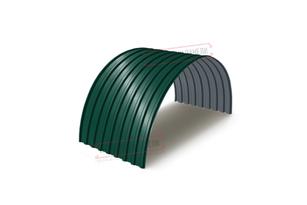Арочный профнастил МП20ПГ-0.45 в цвете RAL 6005 (моховой зеленый) представляет собой идеальное решение для создания надежных и эстетичных конструкций, гармонично вписывающихся в природный ландшафт. Профиль МП20ПГ, с высотой волны 20 мм, специально разработан для холодного гиба, что позволяет формировать из него изящные и прочные арочные перекрытия. Изготовленный из высококачественной оцинкованной стали толщиной 0.45 мм, он обладает выдающейся стойкостью к коррозии и механическим повреждениям. Полиэстерное покрытие не только придает материалу насыщенный и долговечный зеленый цвет, но и эффективно защищает его от ультрафиолетового излучения и агрессивных атмосферных осадков, сохраняя первоначальный вид на долгие годы. Общая ширина листа 1100 мм обеспечивает оптимальный расход материала и удобство монтажа на больших площадях. Арочная форма, созданная из этого профнастила, значительно увеличивает несущую способность конструкции, позволяя перекрывать обширные пролеты без дополнительных внутренних опор, что экономит пространство и упрощает проектирование. Этот материал является превосходным выбором для объектов, где требуется сочетание высокой функциональности, долговечности и естественного, ненавязчивого дизайна.