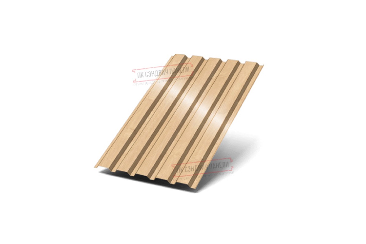 Профилированный лист с высотой гофры 35 мм. Обладает ровными полками, без добавочных рёбер жёсткости. Однако сама форма профиля с чередованием широких нижних и узких верхних вершин придаёт этому стройматериалу значительную устойчивость к скручиванию и прочность на изгиб. За счёт своих технических характеристик, такой профлист успешно применяется в самых разных сферах. Таких, как: заливка фундамента в качестве армирующей основы , обустройство кровли, монтаж внутренних переборок в торговых зданиях, возведение ограждений, облицовка фасадов, строительство щитовых конструкций.-35 отличается лёгким весом, что заметно облегчает его транспортировку и монтаж. В зависимости от области применения гофрированного листа, мы предлагаем вам заказать необходимую толщину металлопроката – от 0,45 до 0,9 мм.Покрытие ECOSTEEL®: