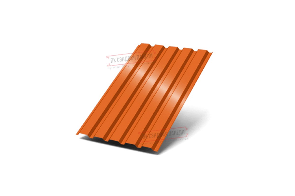 Профнастил с высотой волны 35 мм. Обладает ровными полками, без дополнительных усиливающих желобков. Тем не менее, сама матрица листа с повторением широких нижних и узких верхних вершин придаёт данному профнастилу достаточную стойкость к скручиванию и прочность на изгиб. За счёт своих эксплуатационных качеств,-35 успешно применяется в самых разных областях. Чаще всего это: заливка фундамента в виде армирующей основы , обустройство кровли, облицовка наружных стен, оборудование внутренних переборок в индустриальных зданиях, строительство щитовых конструкций, установка заборов.-35 обладает лёгким весом, что значительно облегчает его перевозку и установку. Исходя из назначения профлиста, мы предлагаем вам выбрать необходимую толщину металла – от 0,45 до 0,9 мм.Покрытие Полиэстер: