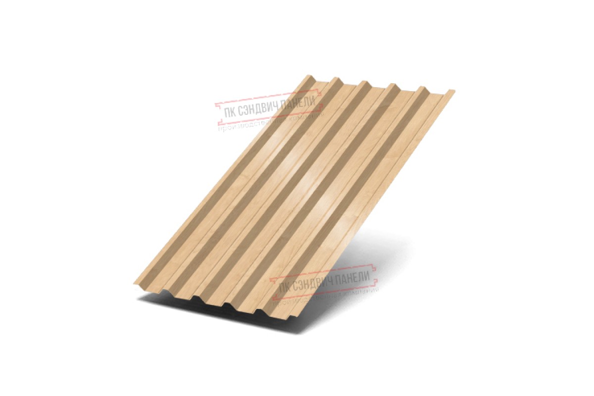 Профнастил С44-1000 ECOSTEEL-Клен-0.5 — популярный материал в Кронштадте для обустройства кровли. Представляет собой металлический оцинкованный лист толщиной 0.5 мм с покрытием. После проката на специальном оборудовании сталь принимает волнообразный вид. Такая конфигурация придает профилю жёсткость.