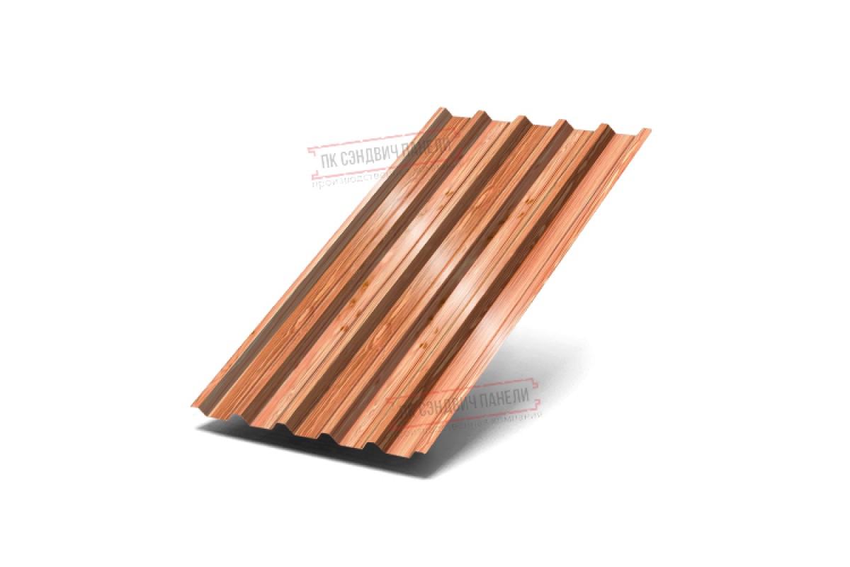 Профнастил — листы из стали холодного проката толщиной 0.5 мм, обработанные полимерным покрытием Экостил текстурированный. Для облицовки кровли в стиле хай-тек Профнастил С44-1000 ECOSTEEL_T-Кедр-0.5 — подходящий материал. Профнастил С44-1000 ECOSTEEL_T-Кедр-0.5 пользуется спросом в Кронштадте, так как он недорогой и практичный. При покупке указанного материала обращайте внимание на рельеф: чем он выразительнее, тем жёстче профилированный лист.