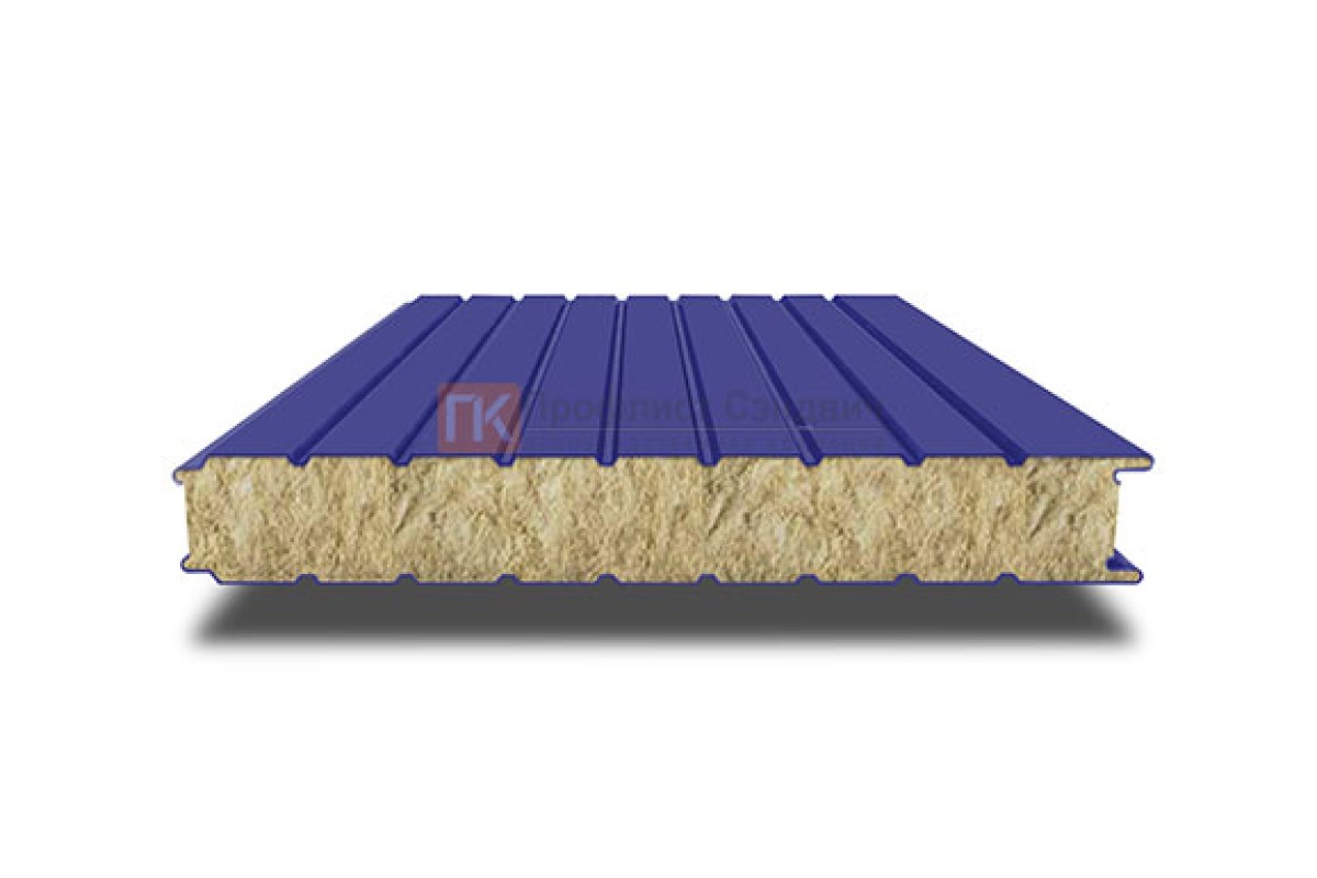 Купить сэндвич-панель для холодильных камер с минеральной ватой, ширина 1000 мм, толщина 180 мм, 0.5/0.5, RAL5002 по наиболее выгодной цене оптом и в розницу.