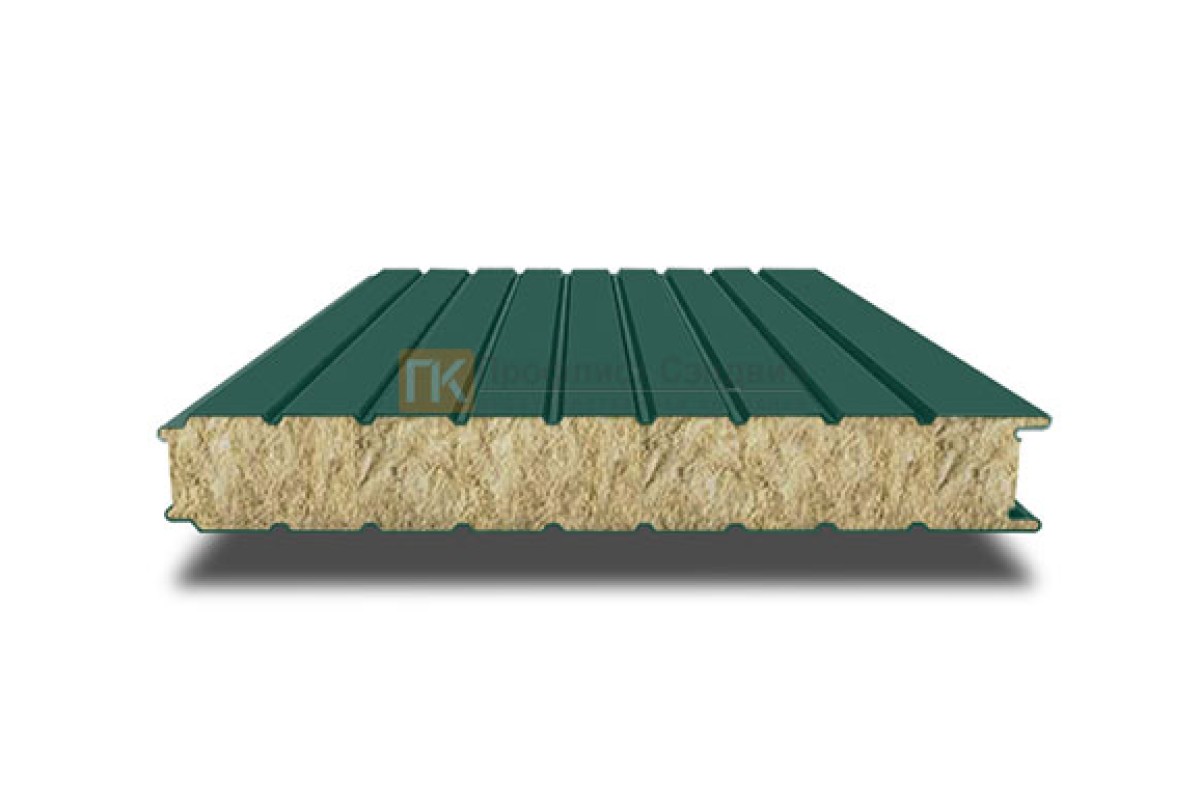 Купить сэндвич-панель для холодильных камер с минеральной ватой, ширина 1000 мм, толщина 200 мм, 0.5/0.5, RAL6005 выгодно - самые низкие цены только у нас!