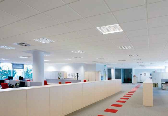 Перфорация и волокнистый слой помогают снизить отражения и гулкость — особенно в больших помещениях с твёрдыми поверхностями.