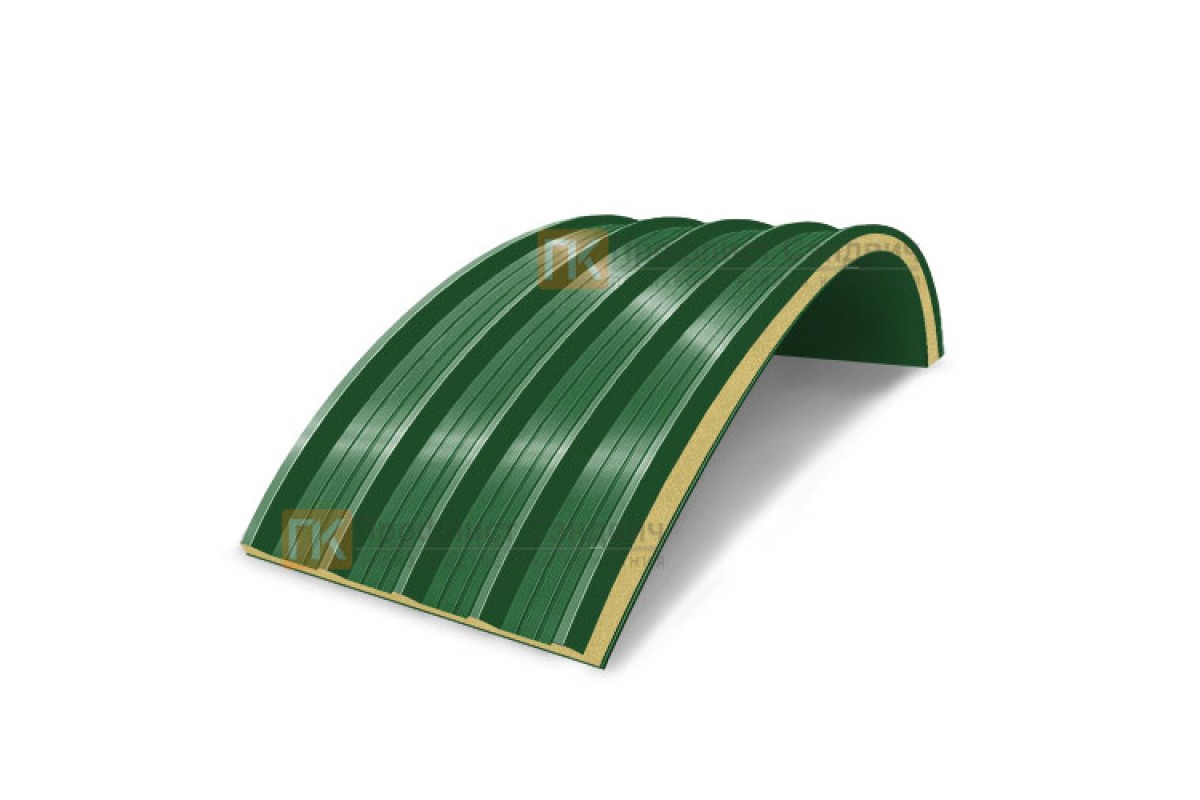 Купить сэндвич-панели арочные с пенополиизоциануратом, ширина 1000 мм, толщина 120 мм, 0.5/0.5, RAL6002 по самым низким ценам среди всех предложений