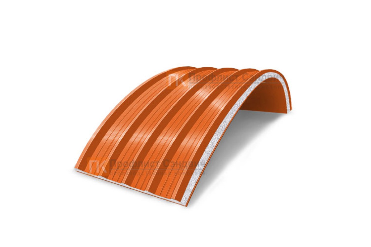 Купить сэндвич-панели арочные с пенополистиролом, ширина 1000 мм, толщина 100 мм, 0.5/0.5, RAL2004 по лучшей цене от лучшего производителя в широком разнообразии.