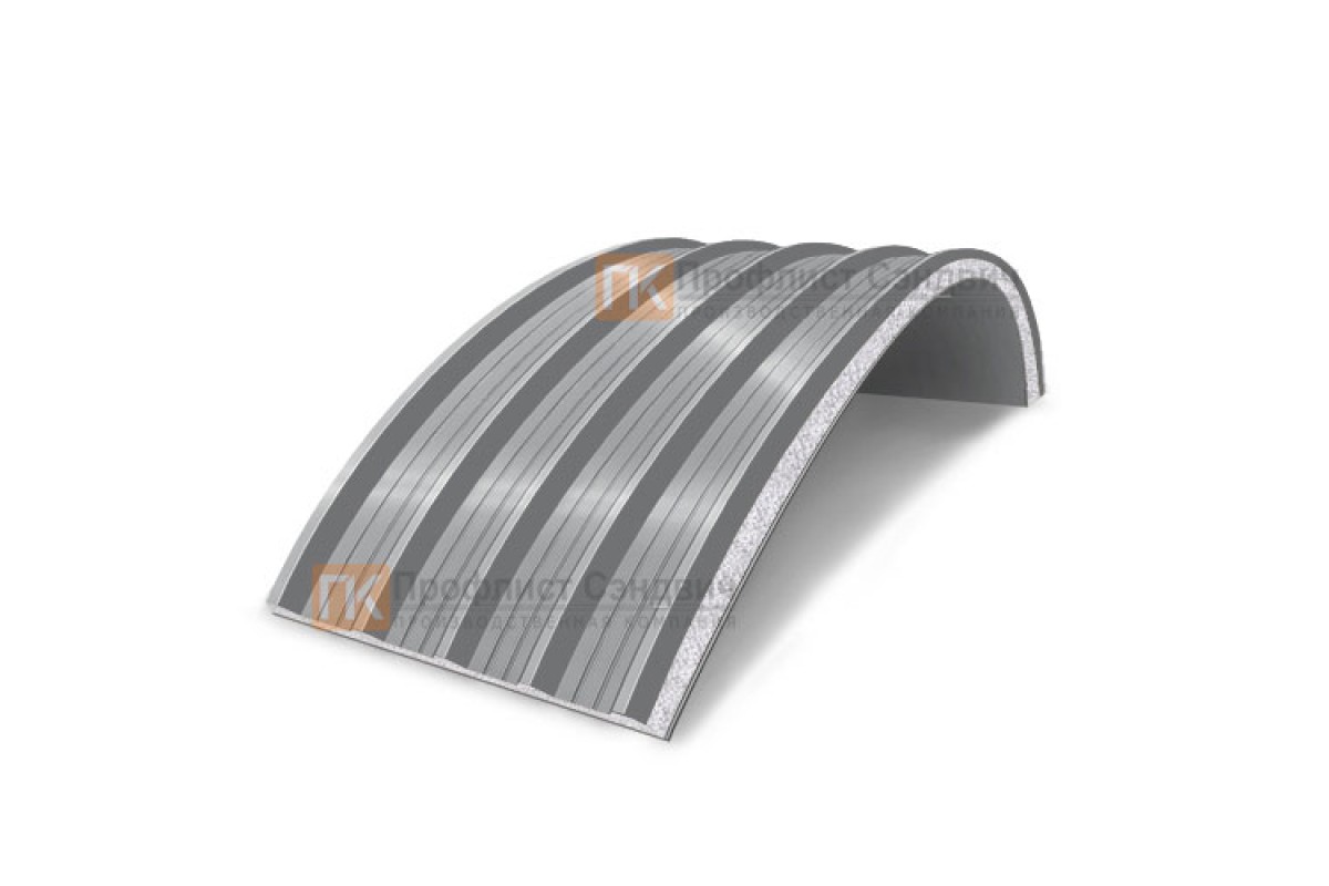 Купить сэндвич-панели арочные с пенополистиролом, ширина 1000 мм, толщина 150 мм, 0.5/0.5, RAL7004 по закупочным ценам. 100% выгодно!