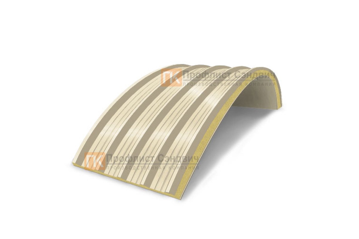 Купить сэндвич-панели арочные с пенополиуретаном, ширина 1200 мм, толщина 150 мм, 0.5/0.5, RAL1015 под заказ по индивидуальным размерам в любом объеме.