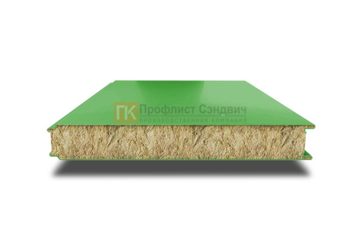 Купить сэндвич панели гладкие с минеральной ватой, ширина 1200 мм, толщина 60 мм, 0.5/0.5, RAL6018 качественно и недорого по цене производителя.