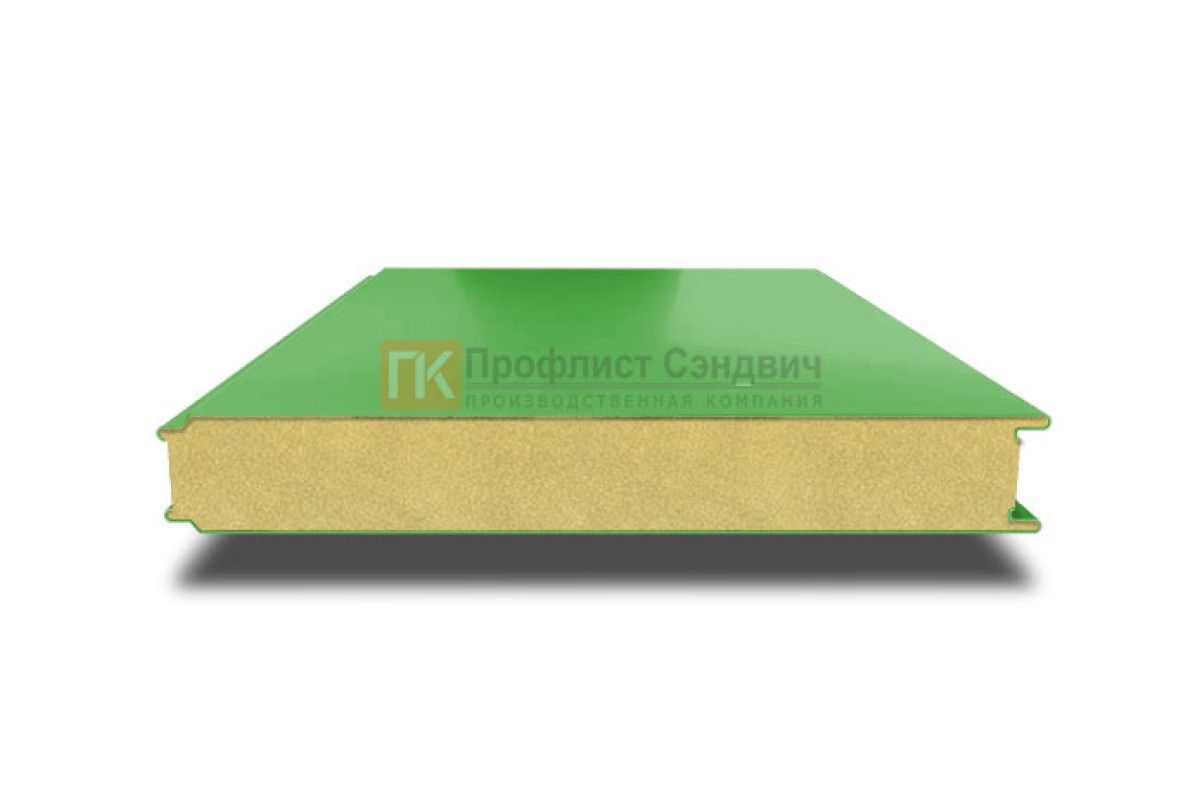Купить сэндвич панели гладкие с пенополиизоциануратом, ширина 1000 мм, толщина 50 мм, 0.5/0.5, RAL6018 под заказ по индивидуальным размерам в любом объеме.