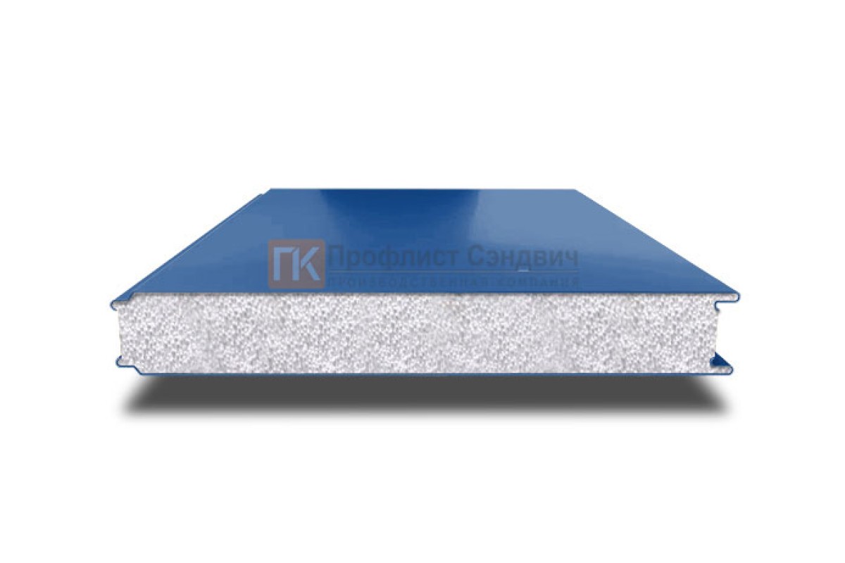 Купить сэндвич панели гладкие с пенополистиролом, ширина 1200 мм, толщина 100 мм, 0.5/0.5, RAL 5005 под заказ по индивидуальным размерам в любом объеме.
