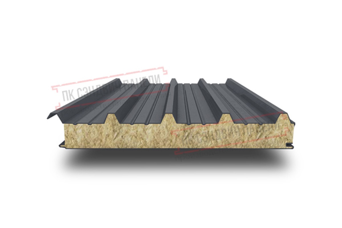 Купить сэндвич панели кровельные с минеральной ватой, ширина 1000 мм, толщина 10 мм, 0.5/0.5, RAL7024 в лучшем соотношении цена-качество без посредников и переплат.