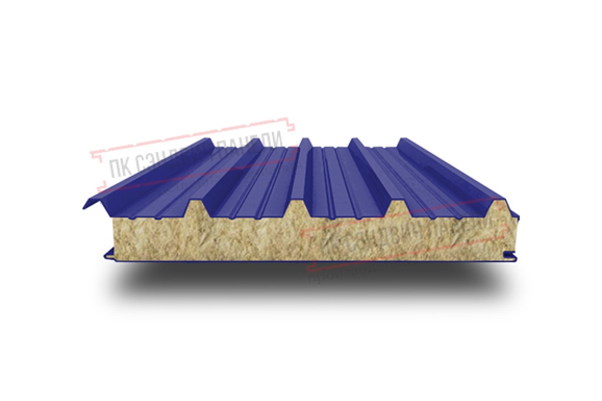Купить сэндвич панели кровельные с минеральной ватой, ширина 1200 мм, толщина 140 мм, 0.5/0.5, RAL5002 под заказ по индивидуальным размерам в любом объеме.