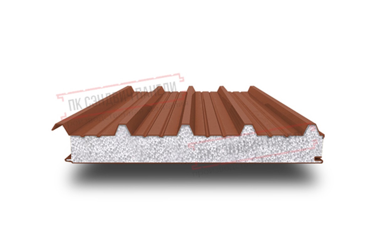Купить сэндвич панели кровельные с пенополистиролом, ширина 1000 мм, толщина 20 мм, 0.5/0.5, RAL8004 недорого. Цены и характеристики на сайте. Сертифицировано.