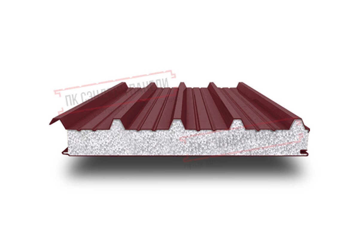 Купить сэндвич панели кровельные с пенополистиролом, ширина 1200 мм, толщина 20 мм, 0.5/0.5, RAL3005 в любом объеме с удобной формой оплаты.