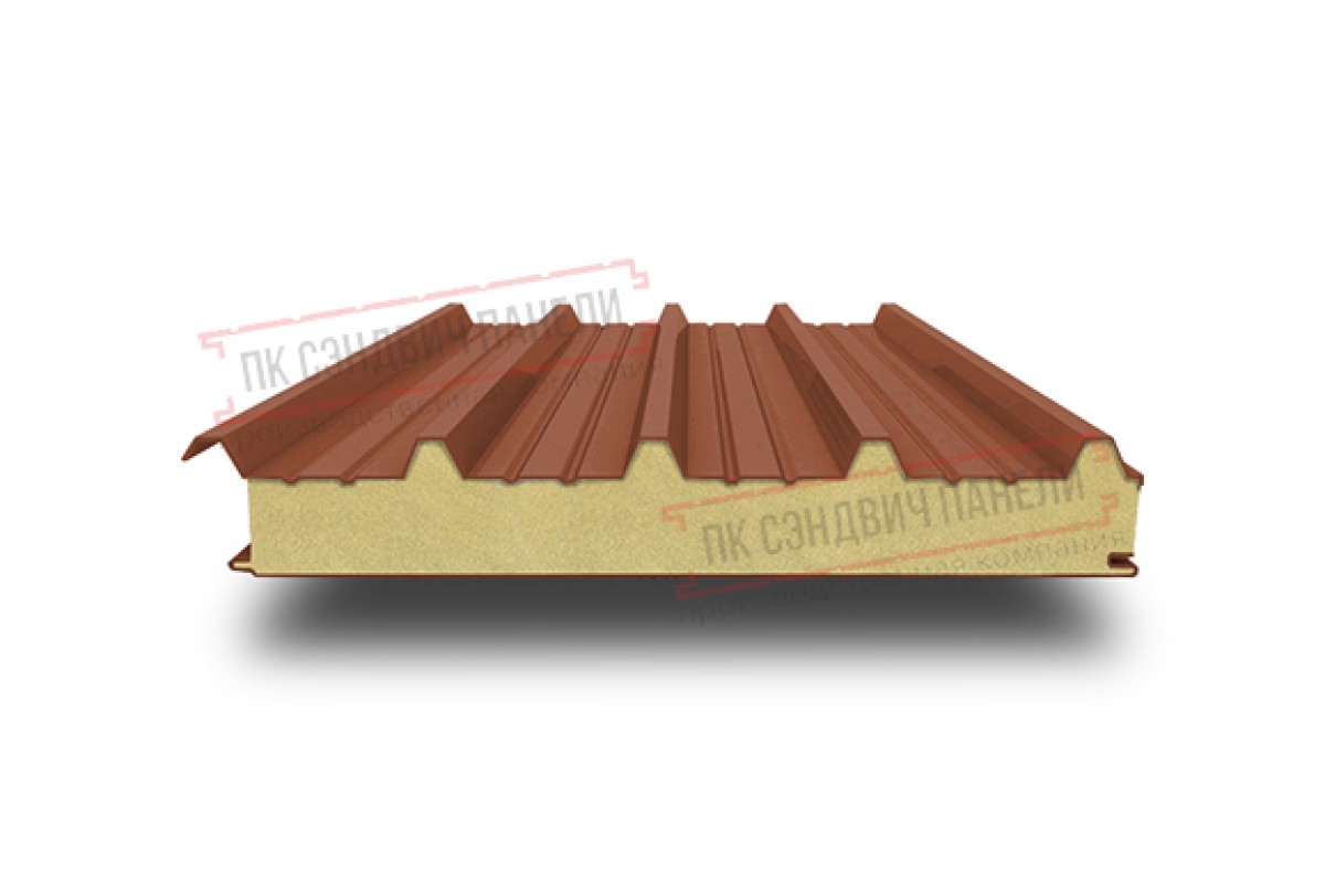 Купить сэндвич панели кровельные с пенополиуретаном, ширина 1200 мм, толщина 30 мм, 0.5/0.5, RAL8004 качественно и недорого по цене производителя.