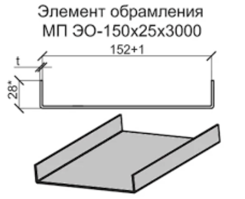 Элемент обрамления для СП-150х25х3000, 2 мм