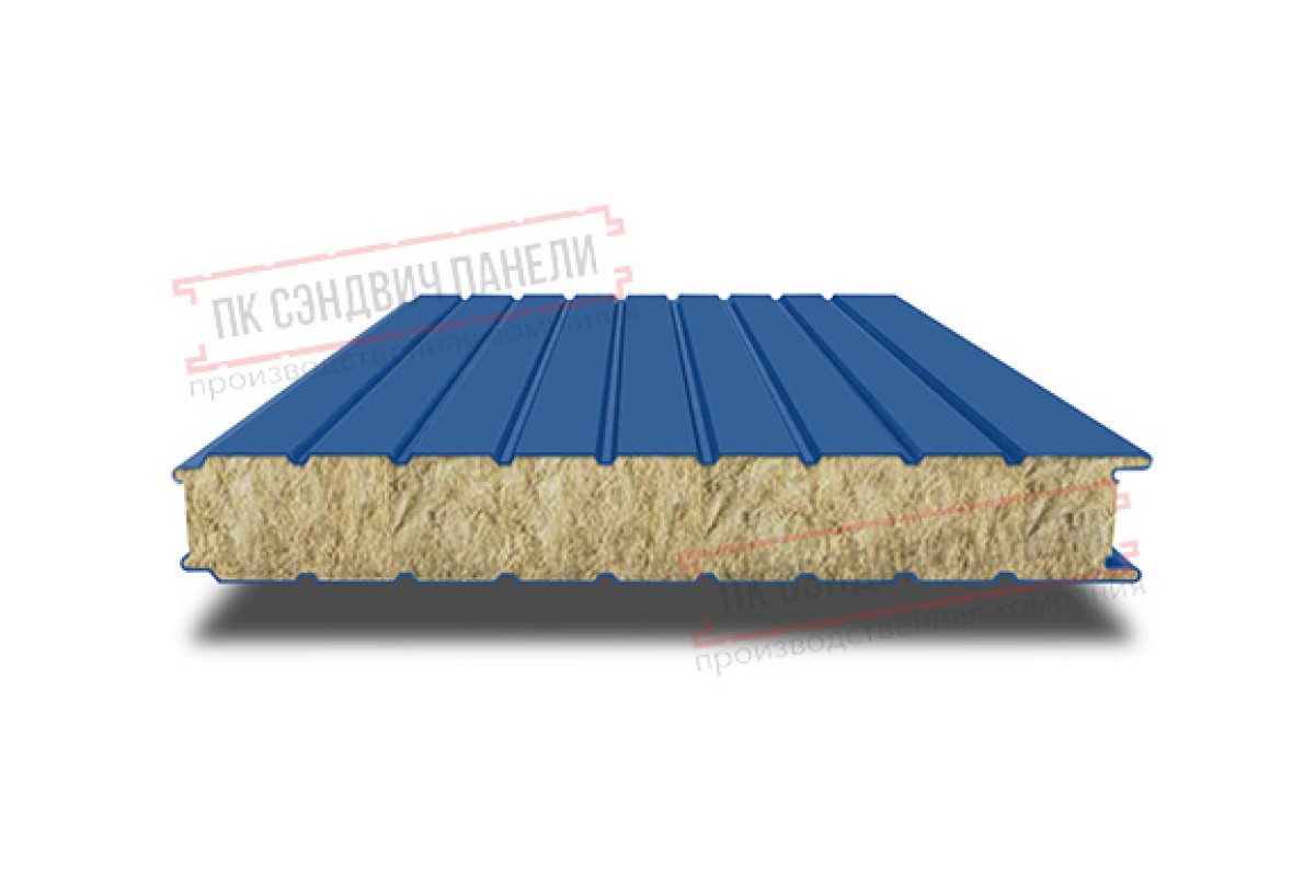 Купить сэндвич панели стеновые с минеральной ватой, ширина 1200 мм, толщина 160 мм, 0.5/0.5, RAL5005 недорого. Цены и характеристики на сайте. Сертифицировано.