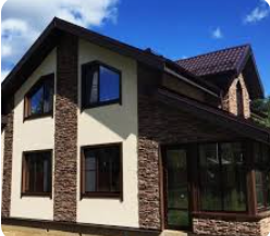 - Фасадные работы: Искусственный камень часто используется для облицовки фасадов зданий, создавая красивый и долговечный внешний вид.