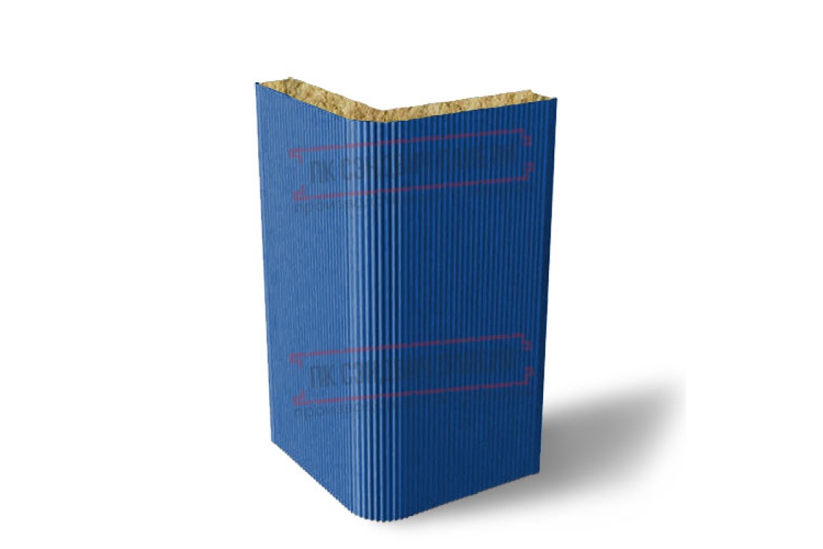 Купить угловую сэндвич-панель вертикальная из минеральной ваты, 0.5/0.5, ширина 1000 мм, толщина 10 мм, RAL5005 в лучшем соотношении цена-качество без посредников и переплат.
