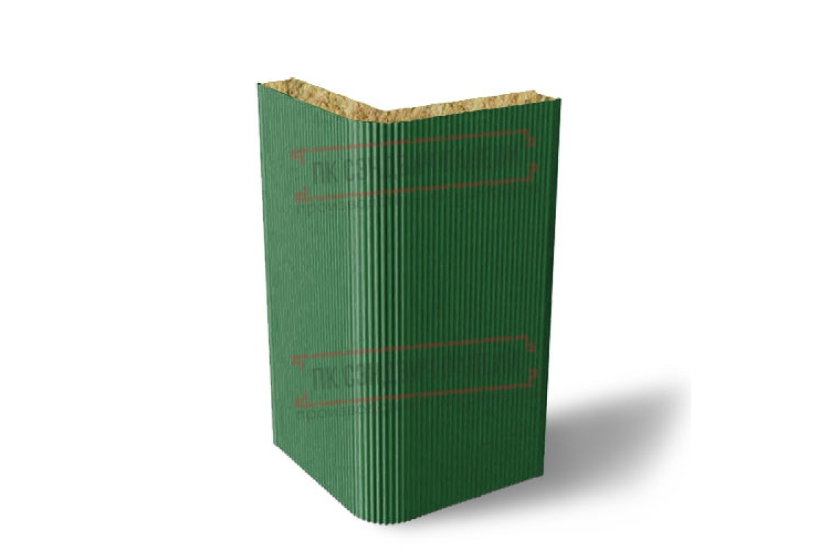 Купить угловую сэндвич-панель вертикальная из минеральной ваты, 0.5/0.5, ширина 1000 мм, толщина 20 мм, RAL6002 недорого. Цены и характеристики на сайте. Сертифицировано.
