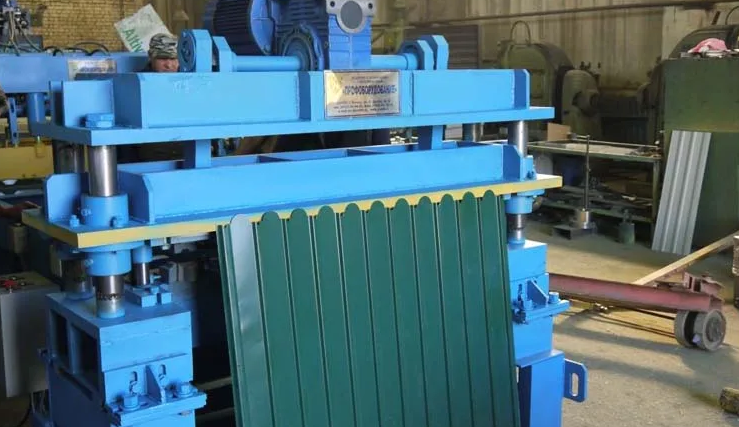 Чтобы нарезать профильный фактурный лист, используются специальные гильотинные ножницы. Если для обрезания гофрированного материала просто меняется насадка, то в этом случае полностью другая система работы. Металл закрепляется при помощи специальных уплотнителей, благодаря которым фиксация практически неподвижная. Гильотина действует одним быстрым и точным ударом, чтобы не повредить качество профнастила.
